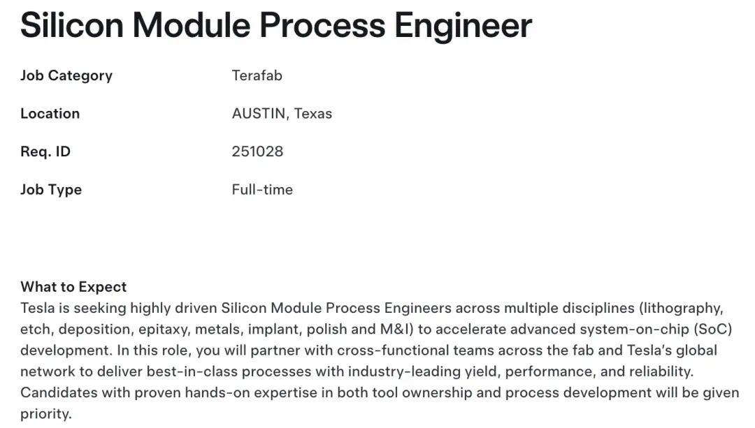 德州奥斯汀这边则在招硅工程师(Silicon Engineer),以及一名需要有“1亿美元以上资本项目”管理经验的技术项目经理(Technical Program Manager)。