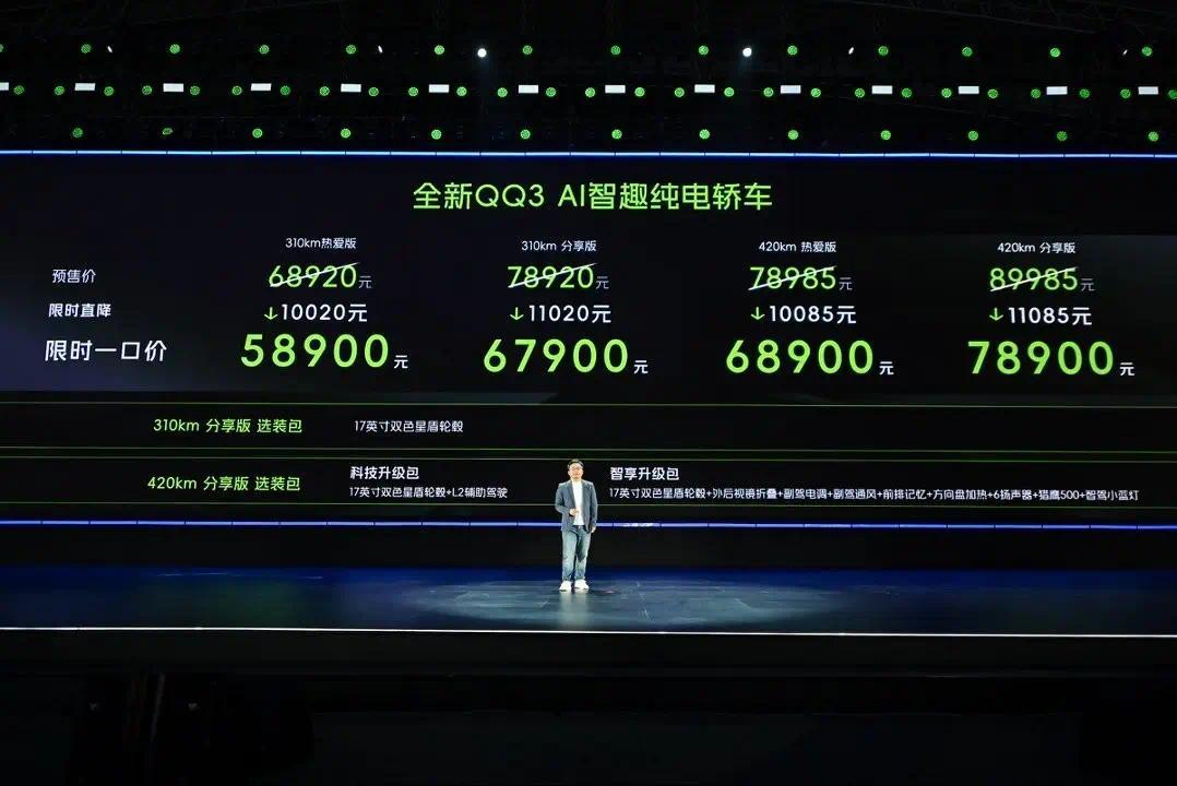 3月30日,奇瑞QQ品牌焕新的首款车型——全新QQ3在成都正式上市。上市发布会现场公布全新QQ3限时一口价为5.89万~7.89万元。